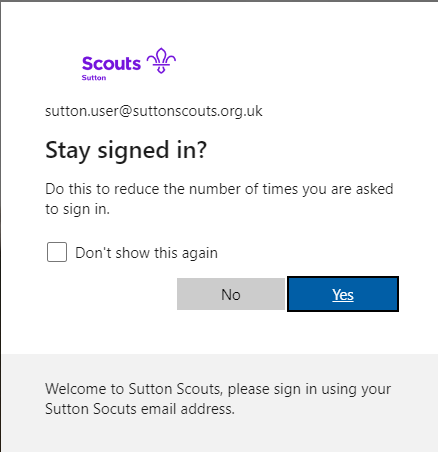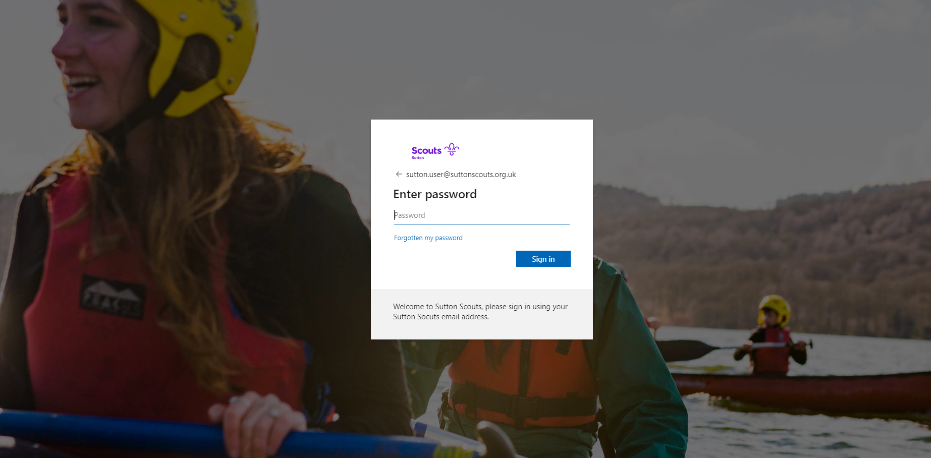 You will then shown the Sutton Scouts bespoke password page.