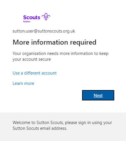 Use your Sutton Scouts email address and click "Next"
