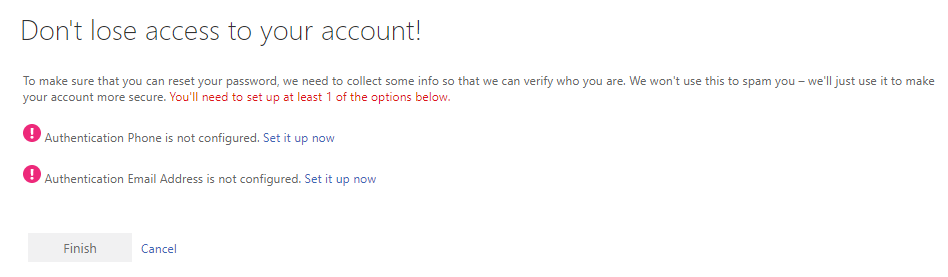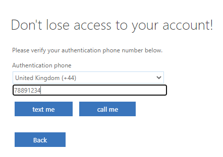 Once you press next you will be required to enter at least one phone number or an alterante email address.